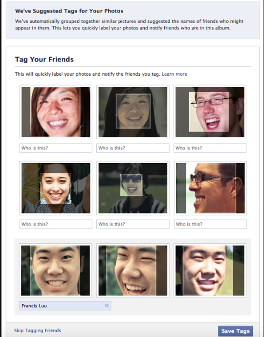 نتذكر جميعا و قبل عدة سنوات، انه كانت هناك ميزة في فيسبوك تحت مسمى " اقتراح اشارة Tag Suggestions" ، و هذه الميزة كانت موجودة عند رفع صورة على فيسبوك، فتظهر ميزة اقتراح صداقة بناءا على وجوه الاشخاص في الصورة، فمثلا اذا كانت الصورة التي قمت برفعها تحتوي وجه صديقك خليل، فان فيسبوك يقترح عليك ان تقوم بعمل اشارة لصديقك خليل.