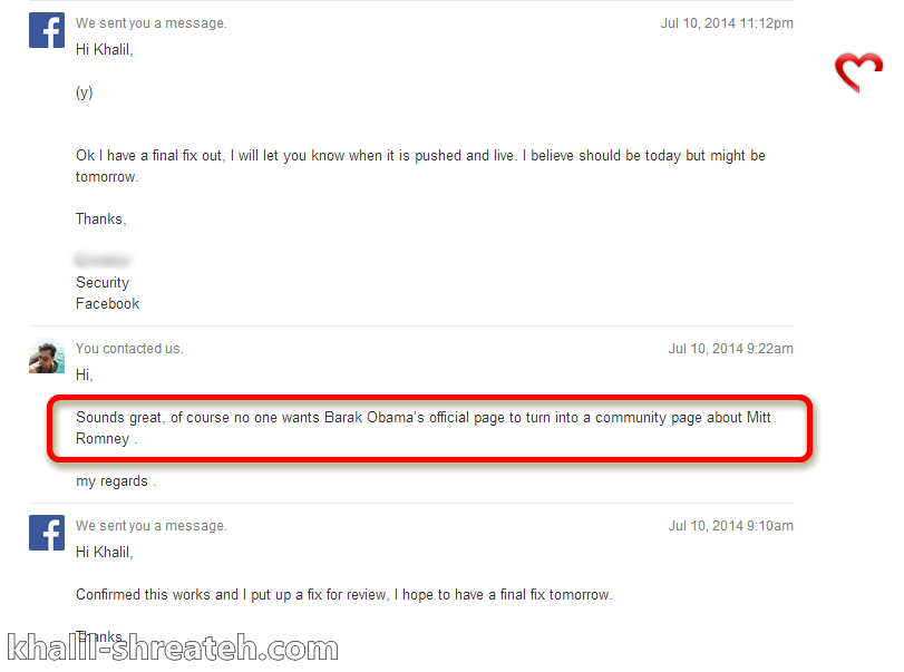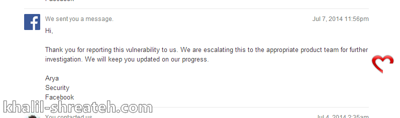 بعد التأكد من الثغرة، قمت بإبلاغ فريق الأمن في فيسبوك من خلال برنامج مكافأة الأخطاء (Bug Bounty). قام الفريق بمراجعة تقريري بسرعة، وأكدوا أن هذه المشكلة تشكل تهديدًا كبيرًا لأمان الصفحات على المنصة.